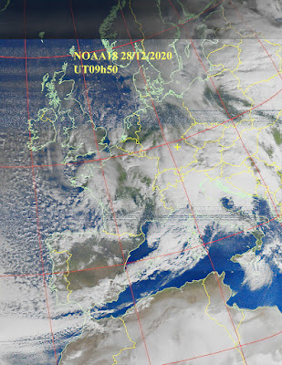 ARISS (Amateur Radio on the ISS (International Space Station)) is celebrating 20years of service. To celebrate this, the Russian radio on board of the ISS is transmitting between X-mas and New year. In total 12 pictures can be downloaded each 1minute transmitting time. I'm using webSDR located in Nürnberg (Germany) and Noordwijk (Netherlands) each time the ISS is flying over.