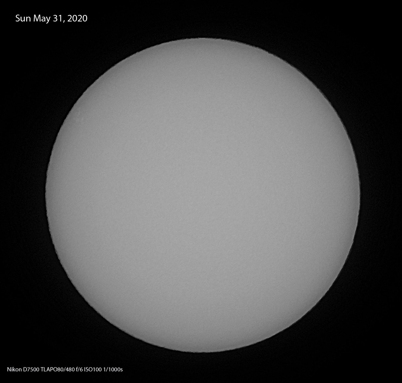 Observation of the Sun today. Some observers mentioned a small sunspot but I could not observe this. At the limb some minor faculae which I could see both with solarfilm and H-Alpha.